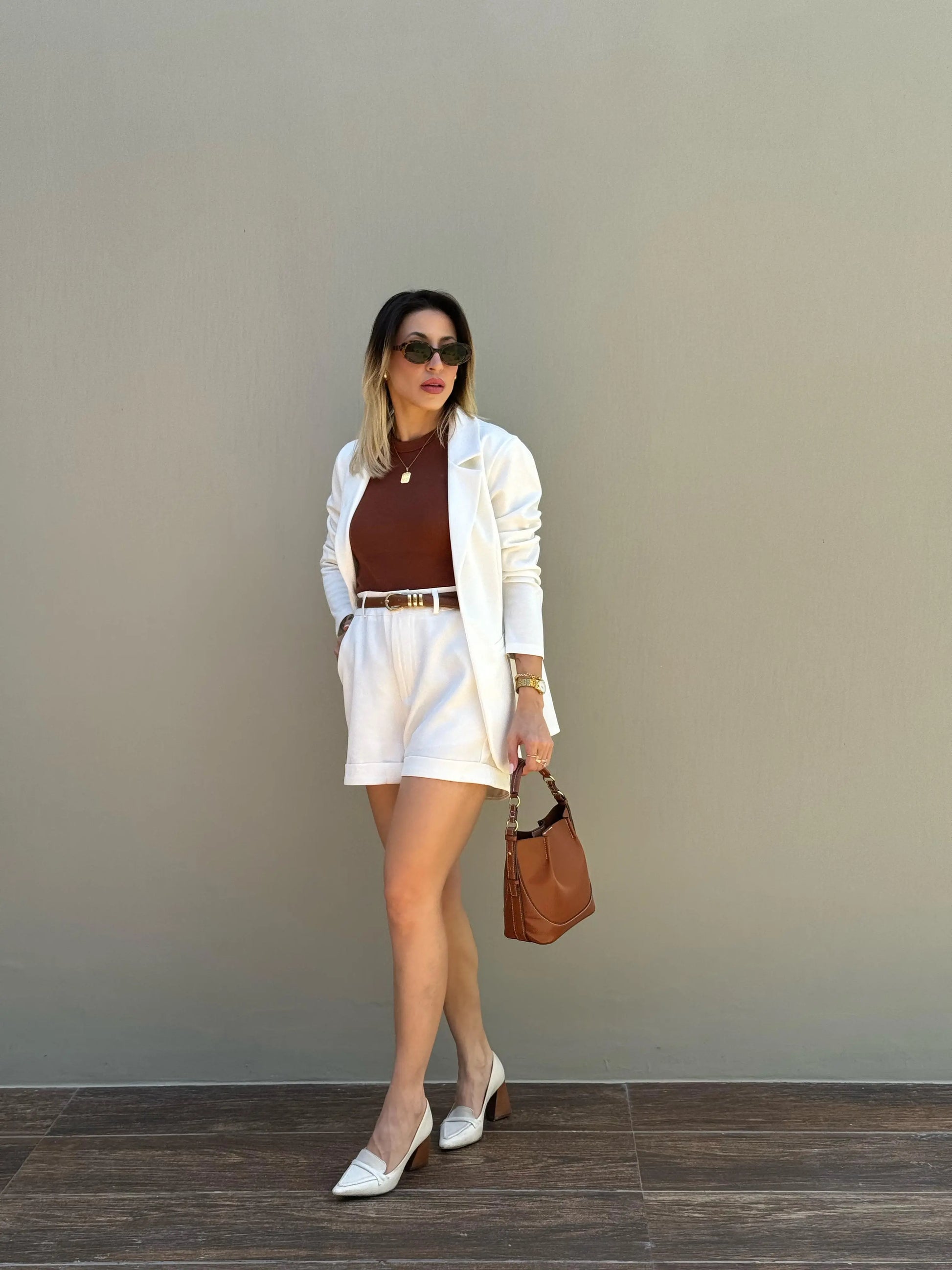 Cores: Preta, Caramelo e Bege com Caramelo